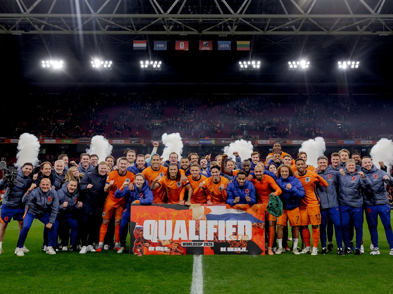 Voor de 12e keer neemt het Nederlands elftal deel aan het WK. Oranje bleef in de kwalificatiereeks ongeslagen en is na de winst op Litouwen verzekerd van het eindtoernooi in Canada, Verenigde Staten en Mexico.